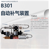 B301型补气装置由两个二位电磁阀、一个过滤器、一个控制器(特殊选件)、二个手动球阀,一个排气阀,一个单向阀及管路组成。它由自动控制回路控制,实现自动补气,以维持电站油压装置或其他储能器内的气液比例。